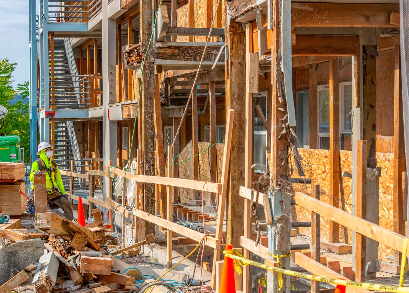 Exterior & Structural Repairs, demo and rebuilding stucco exterior, rebuilding stairwells, handrails, restoring decking