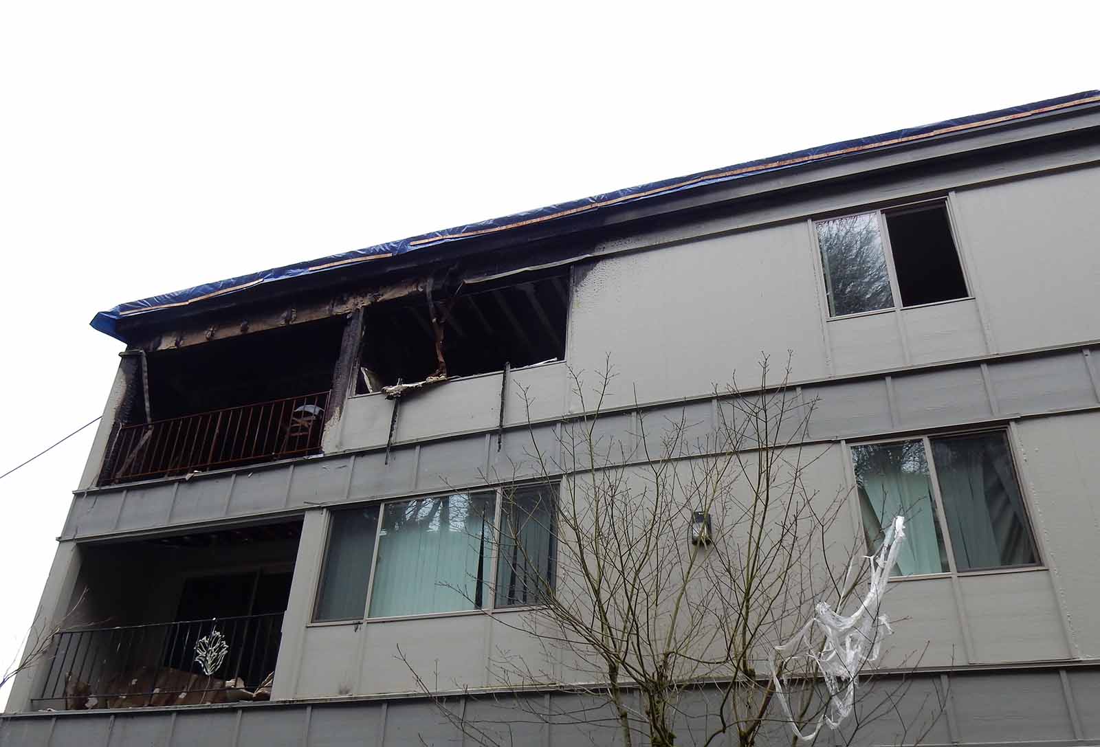 Fire restoration, exterior siding, rain-screen system, plumbing, windows, sliding glass doors, flashing, decks, interior refresh